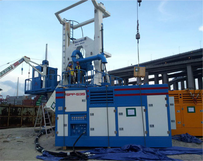 景安重工總經(jīng)理魏垂勇先生就低凈空全回轉(zhuǎn)鉆機(jī)作了詳細(xì)介紹。他指出,低凈空全回轉(zhuǎn)鉆機(jī)是景安重工即將推出的新產(chǎn)品,可在最低4.5米(極限情況下4米)的高度空間內(nèi)施工,且自帶行走與沖抓取土裝置,配合一臺(tái)多功能挖機(jī)即可完成常規(guī)施工,實(shí)現(xiàn)“低凈空+全回轉(zhuǎn)”一體化。此外,該鉆機(jī)通過(guò)模塊化設(shè)計(jì),在不限高地區(qū)簡(jiǎn)單更換模塊后,即可使用常規(guī)套管和沖抓斗作業(yè),從而提高施工效率。