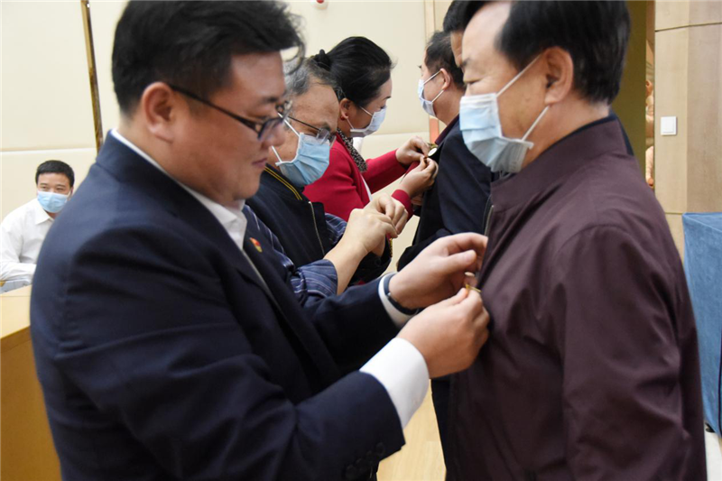 三位基建工程兵老兵的分享使青年員工們備受鼓舞,現(xiàn)場響起了雷鳴般的掌聲。工勘巖土集團(tuán)副總經(jīng)理馬君偉、閆京潔及總工辦高級顧問郭清分別為三位老兵送上工勘五四青年節(jié)紀(jì)念章。
