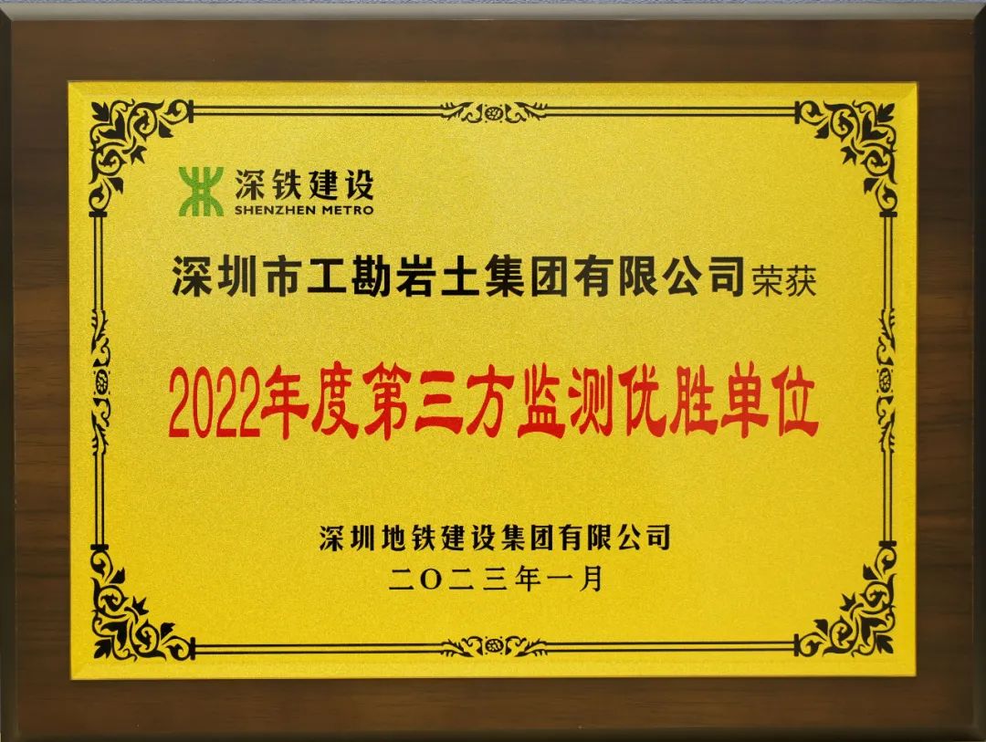 近日,深圳地鐵建設(shè)集團有限公司公布了《關(guān)于建設(shè)工程施工總承包合同單位、第三方監(jiān)測及控制測量單位2022年度考核的通報》,工勘集團以年度考核排名第一的成績獲評為“2022年度第三方監(jiān)測優(yōu)勝單位”。