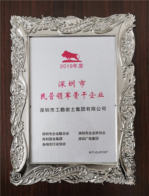 工勘集團(tuán)獲授牌“2019年度深圳市民營領(lǐng)軍骨干企業(yè)”